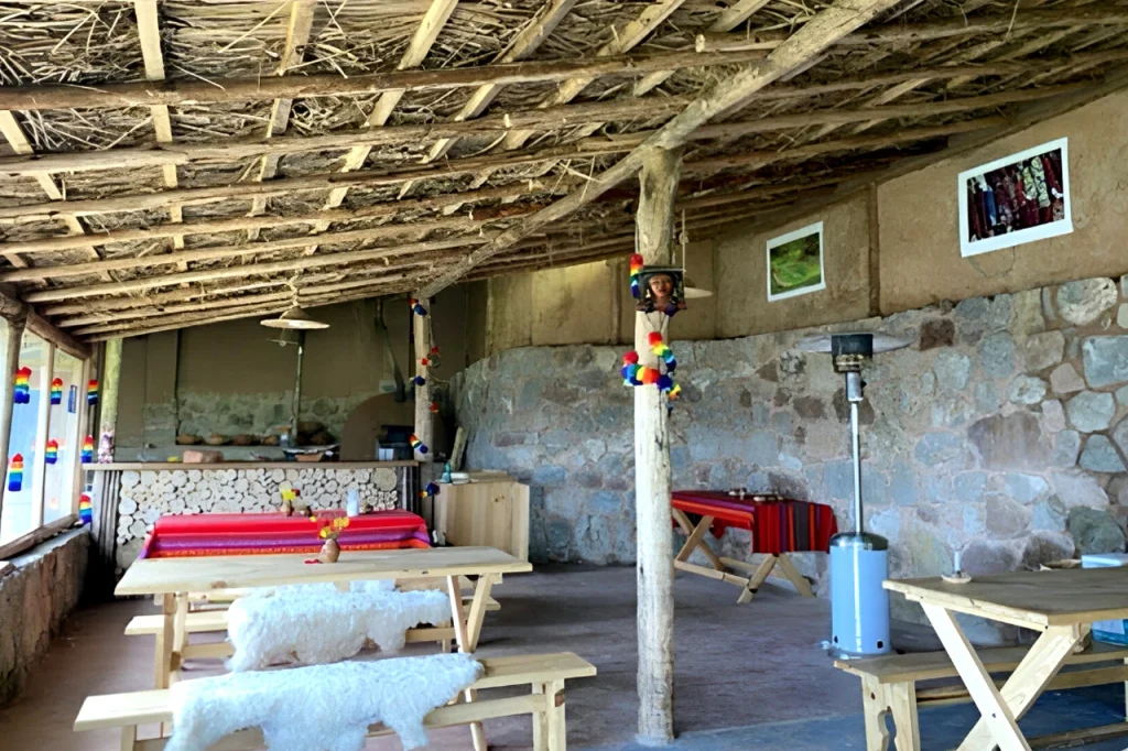 Contamos con un espacio amplio para las meriendas, para poder tomar desayuno, almorzar y cenar. Usamos horno de barro y todos los implementos para hacer de un momento de alimentación tranquilo y saludable. Nuestra cocina se encuentra equipada con todas los utensilios para poder una comida saludable andina.